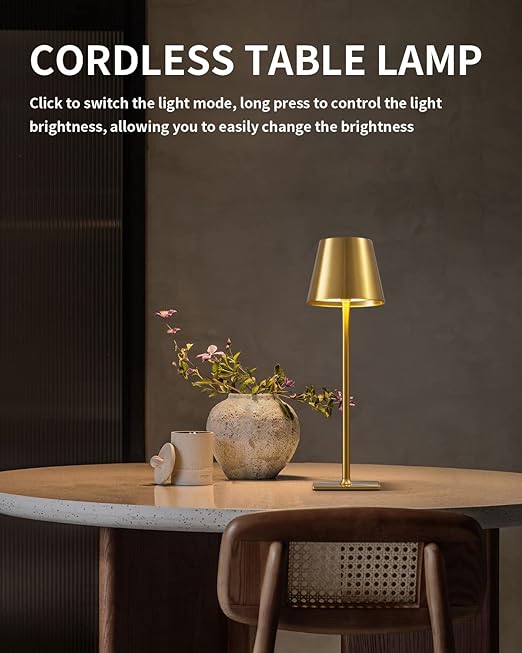 SaleKDG 2 Pack Cordless Table Lamp,Portable LED Desk Lamp, 5000mAh Battery Operated, 3 Color Stepless Dimming Up, for Restaurant/Bedroom/Bars/Outdoor Party/Camping/Coffee Shop Night Light(Gold)