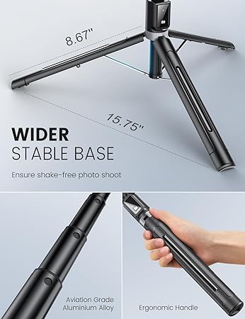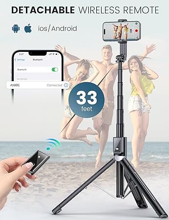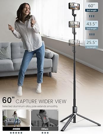 Adjustable Height: Extendable up to 60 inches, this tripod/selfie stick allows you to capture a wide range of angles and perspectives, making it ideal for group shots, scenic views, or creative photography.
