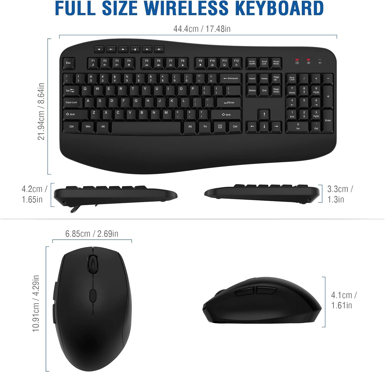 Wireless Keyboard Mouse Combo, EDJO 2.4G Full-Sized Large Wireless Keyboard with Comfortable Palm Rest and Optical Wireless Mouse for Windows, Mac OS PC/Desktops/Computer/Laptops